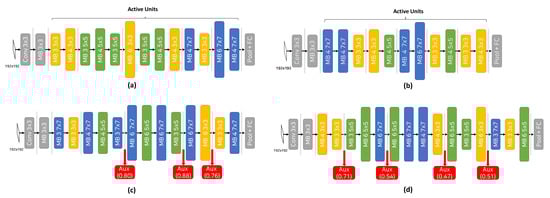 - Real, E.; Aggarwal, A.; Huang, Y.; Le, Q.V. Regularized evolution for image classifier architecture search. In Proceedings of the AAAI Conference on Artificial Intelligence, Honolulu, HI, USA, 27 January–1 February 2019. [Google Scholar]