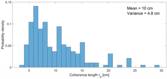 The normalized histogram of the simulated coherence length for the simulated parameter in Figure 4 is given in Figure 6.