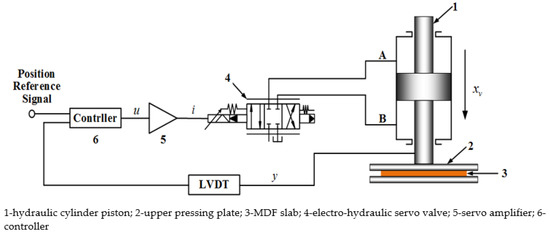 - Shao, X. Research on Position Tracking Control of MDF Continuous Hot Press Plate Thickness Control Hydraulic System. Master’s Thesis, Northeast Forestry University, Harbin, China, 2015. [Google Scholar]