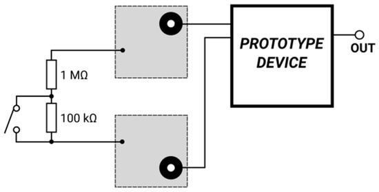 Furthermore, the output of the signal was requested to be in real time, in terms of analogue voltage, directly proportional to presented skin resistance across input terminals. This was required with respect to compatibility with the signal recording device routinely used by our research partners, and the conversion factor was agreed to be 1 V per 1 MΩ.
