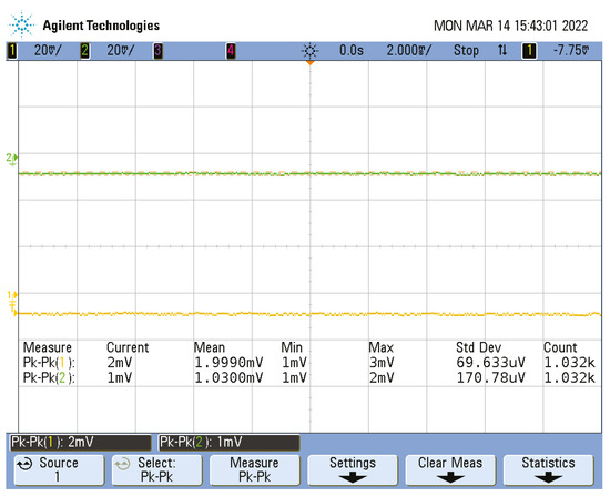 Figure 7, channel 1). The mean peak–peak noise amplitude was measured at 2.0 mV ± 0.07 mV (