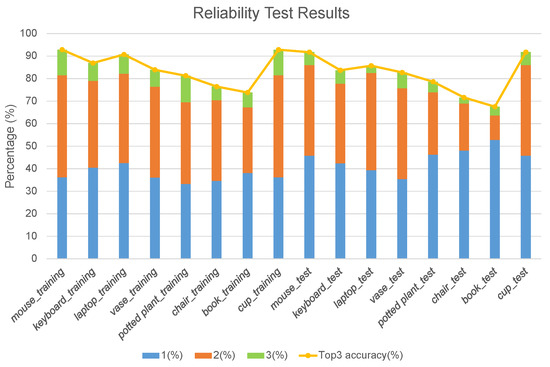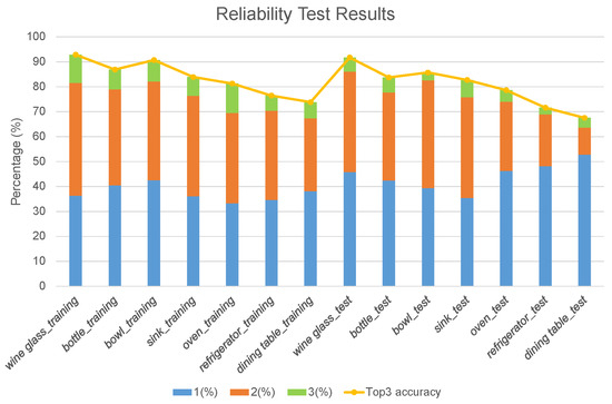 The reliability test results of the above model are shown in Figure 9. Similarly, the “Top 3 accuracy (%)” of most of the objects is over 80%, indicating that the semantic association model is highly reliable.