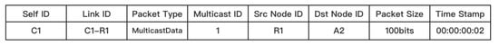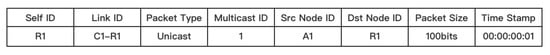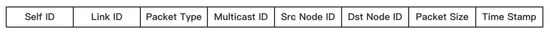 Self ID is the ID of the current node. The link ID is the ID of the link through which the packet enters the current node. The Src Node ID indicates the ID of the node that sends the packet. The Dst node ID indicates the ID of the destination node of the data packet. The timestamp refers to the time when the packet is forwarded or received by the current node.