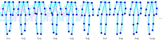 is the minimum value of a coordinate in the whole sequence. In this work, H is set as the height of the first skeleton in a skeleton sequence. After alignment, all the participants’ spatial positions are aligned according to the minimum coordinate , and all the skeleton sequences are resized to have the same scale with their first skeletons. This operation eliminates the influence of camera shake and distance variation.