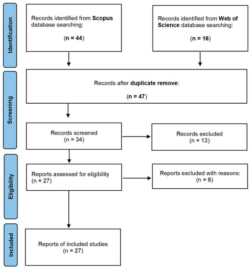 30. Page, M.J.; Moher, D.; Bossuyt, P.M.; Boutron, I.; Hoffmann, T.C.; Mulrow, C.D.; Shamseer, L.; Tetzlaff, J.M.; Akl, E.A.; Brennan, S.E.; et al. PRISMA 2020 explanation and elaboration: Updated guidance and exemplars for reporting systematic reviews. BMJ 2021, 372, 160. [Google Scholar] [CrossRef] [PubMed]