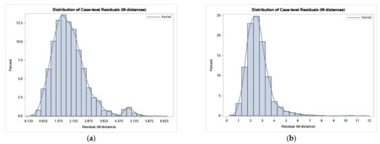 Distribution of residuals (a) pre-trial data set, (b) post-trial data set.