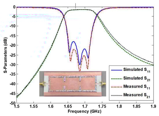 - Moro, R.; Moscato, S.; Bozzi, M.; Perregrini, L. Substrate integrated folded waveguide filter with out-of-band rejection controlled by resonant-mode suppression. IEEE Microw. Wirel. Compon. Lett. 2015, 25, 214–216. [Google Scholar] [CrossRef]