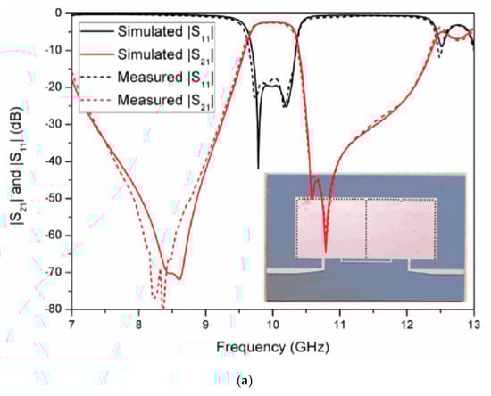 - Zhu, F.; Luo, G.Q.; Liao, Z.; Dai, X.W.; Wu, K. Compact dual-mode bandpass filters based on half-mode substrate-integrated waveguide cavities. IEEE Microw. Wirel. Compon. Lett. 2021, 31, 441–444. [Google Scholar] [CrossRef]
