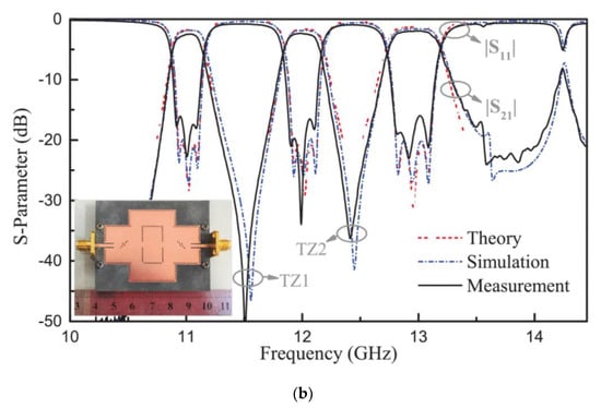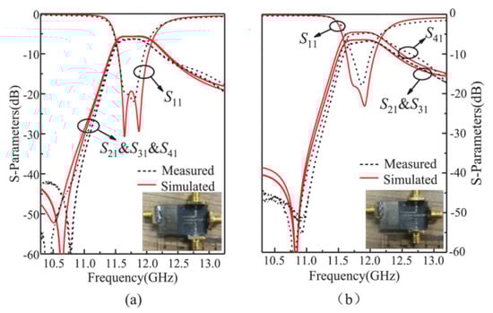 - Zhang, G.; Liu, Y.; Wang, E.; Yang, J. Multilayer packaging SIW three-way filtering power divider with adjustable power division. IEEE Trans. Circuits Syst. II Express Briefs 2020, 67, 3003–3007. [Google Scholar] [CrossRef]