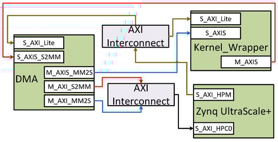 - Xilinx. AXI DMA LogiCORE IP Product Guide. 2019. Available online: https://www.xilinx.com/support/documentation/ip_documentation/axi_dma/v7_1/pg021_axi_dma.pdf (accessed on 21 February 2022).