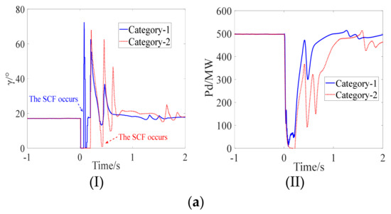 Regarding the transient stability analysis, we are most concerned with the external characteristics of converter stations, especially DC power. The simulation results of SCFs corresponding to the three categories are shown in Figure 1.