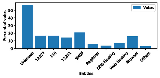 - Domain abuse reporters. We believe that abusive domain name reporters should be trained in order to reduce the cases of misreporting. On the one hand, reporters should be trained to identify various types of abusive domain names. For example, they should be trained to correctly identify the brands being spoofed by phishing sites or use third-party detection tools (e.g., PhishTank (https://www.phishtank.com, accessed on 25 February 2022), Virustotal (https://www.virustotal.com, accessed on 25 February 2022) to identify malicious domains. On the other hand, reporters should be trained to identify each Internet entity that provides service for abusive domain names, especially those that are more difficult to identify, such as web-hosting providers or DNS hosting providers, as we described in the previous section.
