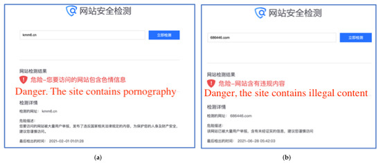 - Networks with Garbage Information Reporting Center (https://www.12321.cn, accessed on 25 February 2022) (12321-Center). It mainly receives reports of abuse information, such as pornographic websites, and spam.