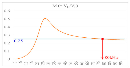 Meanwhile, the I/O voltage gain (M = VO/VS) of the proposed voltage quadrupler is 2/n at resonant frequency, as mentioned in Section 2, Comparison and Analysis. Since “the input voltage (VS) and output voltage (VO) are, respectively, 400 V and 100 V” and “the highest efficiency is indicated at resonant frequency,” n is 8.