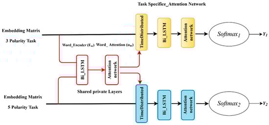 43]. MTL improves the learning capabilities, encoder quality, and performance of sentiment classification of a conventional single-task classifier by learning the relative tasks in parallel using the shared representation of text sequences [