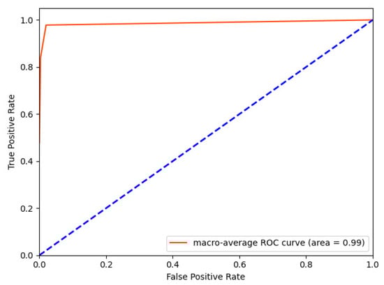 To further illustrate the effectiveness of the proposed method, we present the confusion matrices of all models with a training ratio of 80%, as shown in Figure 8. To more intuitively see the classification results of the above model (training ratio of 80%), we display them as bar graphs, as shown in Figure 9. We also give the ROC curve of the proposed method on the test set with a training ratio of 80%, as shown in Figure 10.