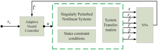 It is well known that many practical industrial systems exhibit both slow and fast phenomena at the same time due to the existence of some tiny parasiti parameters, for instance, small time constants, masses, resistances, voltage regulators, capacitances, and so on [1,2,3,4,5] which can be accurately modeled by two-time-scale systems, and are also named as singularly perturbed systems (SPSs). Vising using a so-called singular perturbation parameter (SPP) to distinguish two-time-scale behavior, the states of the original SPSs are divided into slow and fast states. Nevertheless, the ill numerical conditioned properties in SPSs leads to stiffness and unwieldiness into controller synthesis and stability analysis in the feedback designs for SPSs. A critical research problem is how to eliminate or alleviate the effect generated by SPP, which has drawn significant attention in the recent years, with fruitful results available. The decentralized control method for multi-agent linear SPSs was provided in [6], where the synchronization problem of networks of linear SPSs was rewritten as stabilization of uncertain linear SPSs to reduce the associated energy and the communication load. The suboptimal control strategy for nonlinear SPSs with known fast-subsystems was investigated in [7], in which it was innovative to the suboptimal performance of the considered systems without having any knowledge of the system. An adaptive dynamic programming scheme is designed for linear SPSs, whose slow-subsystems are unknown [8]. The tracking control of nonlinear SPSs with model errors and exogenous disturbances was established by using the sliding mode scheme in [4]. The inverse optimal synchronization for SPSs with constant time delays was studied in [9]. The fixed-time stabilizing problem of linear SPSs in continuous time domains was investigated in [10], based on the event-triggered mechanism. It should be pointed out that the main method utilized in the control of SPSs above is based on decomposing the original plant into a slow-subsystem and a fast-subsystem (a boundary-layer subsystem). However, the aforementioned idea is mainly confined to linear SPSs or standard singular perturbation model. Unfortunately, for SPSs with highly complex nonlinearities and strong couplings, it is hard to decompose them into slow-subsystems and fast-subsystems and thus it is generally not applicable to industrial systems. To overcome this issue, the methods on the basis of Takagi-Sugeno (T-S) fuzzy models [11,12,13,14,15,16] and neural networks (NNs) [17,18,19] have been suggested as an effective treatment. Using T-S fuzzy methods, the control for fractional-order SPSs in the presence of external disturbance and matched uncertainties based on sliding mode control method in [20]. Cheng et al. [11] presented the output-feedback control approach for discrete-time SPSs based on a novel stochastic communication protocol to solve the problems with the communication and the reliability of signal transmission. Liu et al. [15] investigated the continuous-time slow-fast coupled model with known fast dynamics and a suboptimal control problem for continuous-time slow-fast coupled systems, given a composite suboptimal controller based on reinforcement learning and T-S fuzzy methods, using them with a permanent-magnet synchronous motor. When the nonlinear SPSs are partially or completely unknown, the approaches perform poorly. To overcome such an issue, multi-time scales NNs were used to identify uncertain SPSs [17,18,19]. In the above-mentioned identifiable framework of multi-time scales NNs, a nonlinear adaptive observer and an optimal controller of uncertain nonlinear SPSs with input constraints were presented in [21]. Fu et al. conducted adaptive optimal control for uncertain nonlinear SPSs [22]. To improve the learning rate of multi-time scales NNs, Zheng et al. proposed a modified optimal bounded ellipsoid algorithm for training the weights of multi-time scales NNs during the identification process for nonlinear SPSs [23,24,25]. It should be noted that these results are restricted to SPSs without the consideration of constraints.