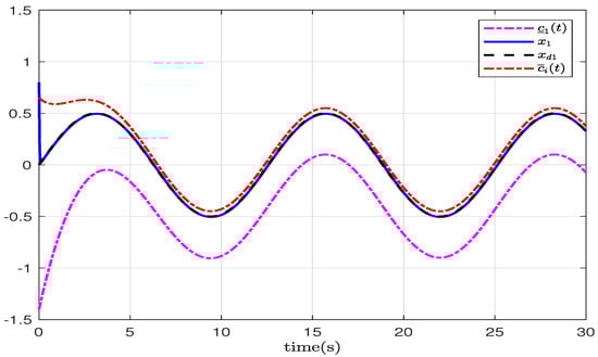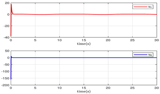 where , , , and . Set the initial condition . is selected as . Choose the design parameters: , , , , , .
