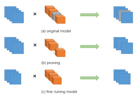 The main idea of the network pruning method is to judge the weights or convolutional kernels that are less important in the model. We remove these and then recover the model performance by the fine-tuning. It is achieved to compress the neural network model parameters to the maximum extent to achieve model acceleration while guaranteeing the model performance.