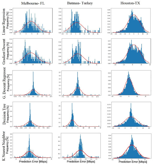 and MSE [Mbps] Analysis of ML Algorithms for Melbourne, FL, Batman, Turkey, and Houston, TX.