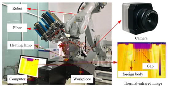 In some industry fields, the infrared camera plays an irreplaceable role in in-process inspection tasks []. For example, in an automated fiber placement inspection system, the defects inside composites are difficult to detect by visible-spectrum cameras because the black prepreg slit-tapes prevent a high visual contrast between the single tows and the plies on the tooling surface, but the thermal-infrared camera achieves good performance in detection of these defects inside composites [].