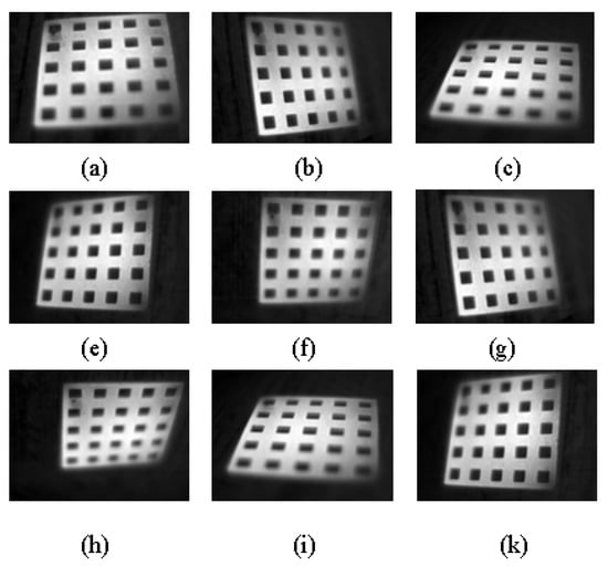 Calibration images based on the method of using hollow calibration targets. (a–k) are images captured from different views.