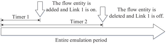 The communication settings reflect the communication characteristics of the network node, e.g., effective isotropic radiated power (EIRP), G/T, modulation, communication frequency, and etc. According to the different placements of the network node in SN, the location parameters should be discussed separately. For space-based nodes, the location parameters contain eccentricity, period, inclination, right ascension of the ascending node, argument of perigee, and true anomaly. For terrestrial-based nodes, the location parameters refer to longitude and latitude. Through communication settings and location parameters, the calculation of connection relationships and link characteristics between nodes could be gained. The details of calculation principles would be demonstrated in Section 4.2. Service configurations are applied to initialize the function of the emulation node, involving protocol selection, data transmission models, node type selection, etc.