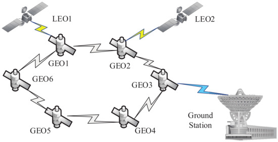 - Li, Y.; Wang, Y.; Zhang, Q.; Yang, Z. TCDS: A time-relevant graph based topology control in triple-layer satellite networks. IEEE Wirel. Commun. Lett. 2019, 9, 424–428. [Google Scholar] [CrossRef]