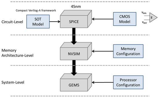 Nvsim [] is a circuit-level model used to estimate the performance, energy, and area of new nonvolatile memory (NVM). Nvsim supports various NVM technologies, including STT-MRAM, PCRAM, ReRAM, and traditional NAND flash; thus, it was used and was modified to match the architectures we chose for simulation.