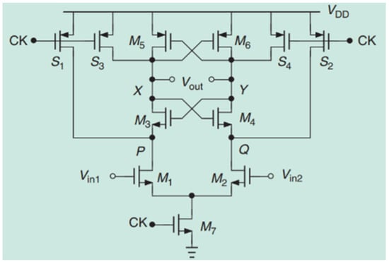 - Razavi, B. The StrongARM Latch [A Circuit for All Seasons]. IEEE Solidstate Circuits Mag. 2015, 7, 12–17. [Google Scholar] [CrossRef]