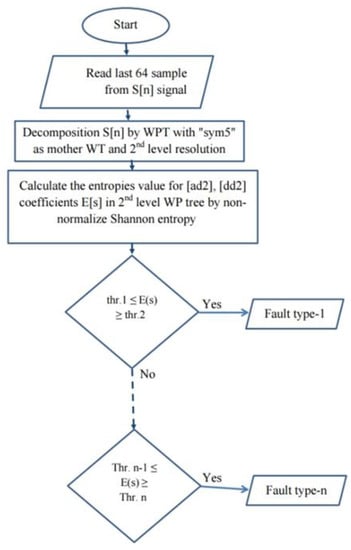 Recently, the application of signal processing-based fault detection and classification methods in inductive motors has received significant interests amongst researchers [15,16,17,18,19,20]. This includes analyzing the frequency components of the current signal of the induction motor using various signal processing algorithms. However, the application of the WPT along with the entropy power energy of different wavelet high frequency subbands for detection and then the classification of the type of the fault in induction motors has neither been theoretically investigated and nor practically demonstrated.