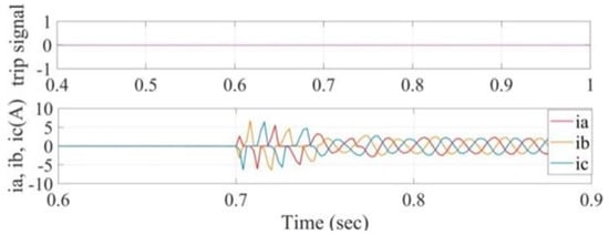 As it can be seen from Figure 30, the time between the occurrence of a fault and the system to activate the trip signal is five samples, which equals to . These experimental results confirm the capability of the proposed technique in detecting and identifying the type of the fault in a very short period of time. The achieved performance is due to the wavelet time-scale decomposition property of the ‘sym5’ mother wavelet.