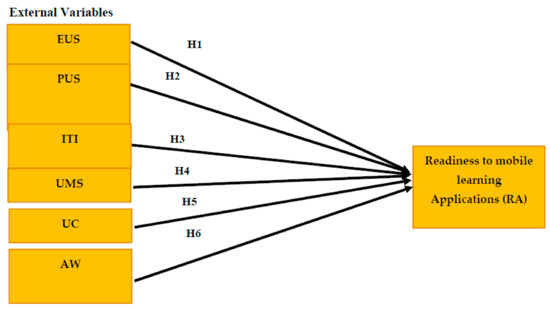 - Aburub, F.; Alnawas, I. A new integrated model to explore factors that influence adoption of mobile learning in higher education:An empirical investigation. Educ. Inf. Technol. 2019, 24, 2145–2158. [Google Scholar] [CrossRef]