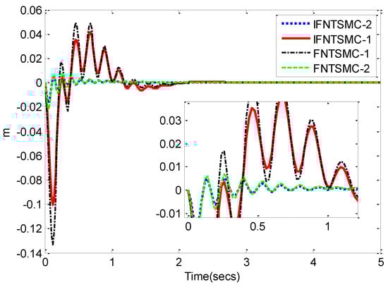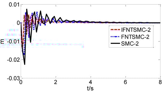 In Figure 3, Figure 4 and Figure 5, IFNTSMC-1 represents the improved fuzzy non-singular terminal sliding mode control of the first-order mode model, and IFNTSMC-2 denotes the improved fuzzy non-singular terminal sliding mode control of the second-order mode model.