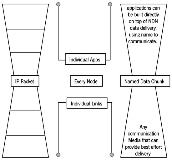 IP and NDN hourglass architectures (Adapted from []).