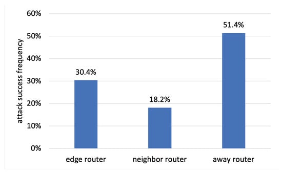 Figure 15 illustrates the attack findings with target locations. There are evaluated by the adversaries as the following clusters: i. 30.4% for edge clusters, ii. 18.2 % for neighbor clusters, and iii. 51.4% for away clusters. These results were obtained by nfd:LRU (default) scenario without any countermeasures applied.