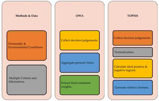 - Multiple criteria and alternatives (MCDM): these are complex situations for decision-makers and are composed of various forms of factors, either quantitative or qualitative [].
