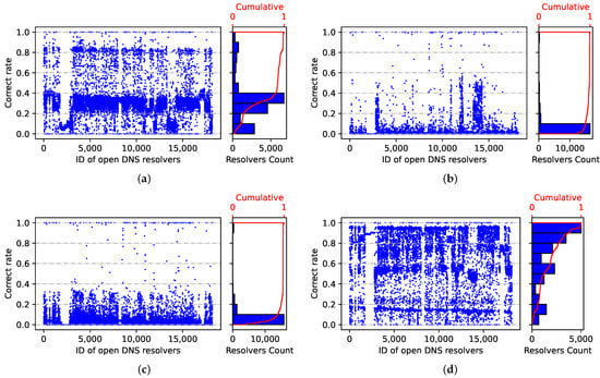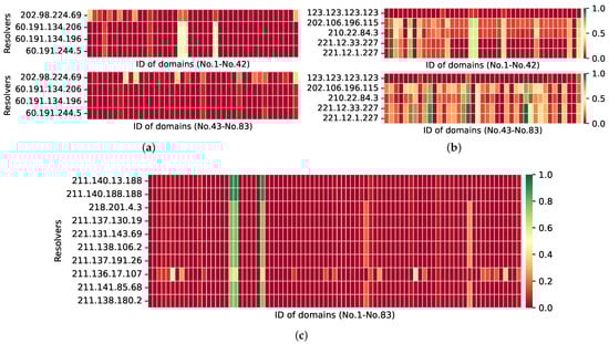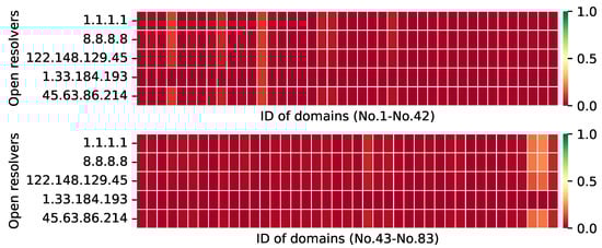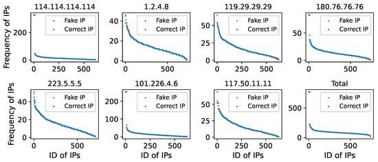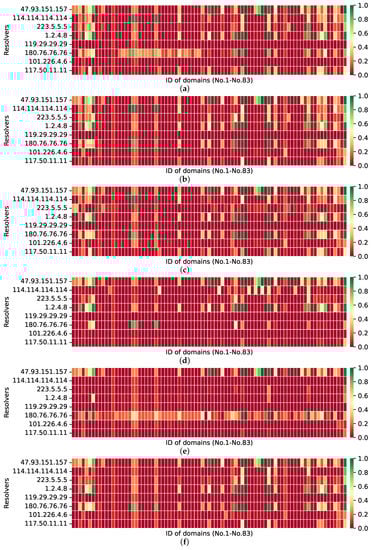 We discovered open DNS resolvers using 11,135,744 IP addresses in Shanghai (Chacuo. http://ips.chacuo.net/, accessed on 8 March 2022). This city has a high number of IP addresses and a higher Internet penetration rate than the rest of the country. In practice, this city has a large number of resolvers available for our study.