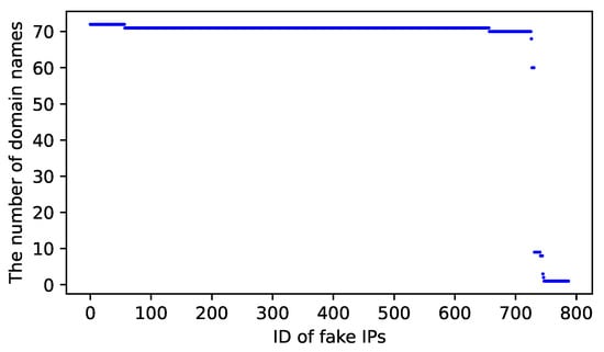 Principle 1: Multiple domains frequently share forged IPs in the response results of DNS resolvers affected by DNS filtering devices, which is one of the primary features, because, in general, valid IP addresses are usually shared and used by very few domains concurrently, especially the blocked domains with high traffic, whose IP addresses are not shared with other domains in order to ensure the quality of service. Of course, we should consider the exceptions. For example, the Google search engine globally has many different top-level domain names (such as google.com, google.co.jp, and google.es), whose IP addresses can be used by more than one domain at the same time.