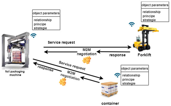 - The transposition of the mechanisms and principles of social interactions from human beings to industrial communicating objects. With this transposition the response to services between objects is executed through principles of social interaction according to strategies and conditions.