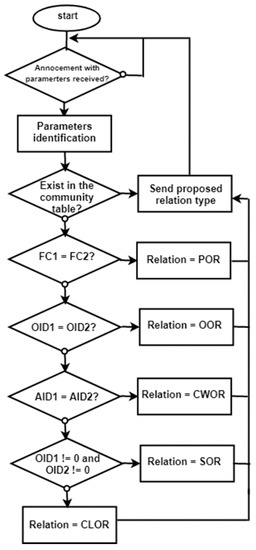 In the presence of social interaction, all individuals of the same community can make a contact. Contact between them establishes a type of relationship that can influence the nature of the interaction because everyone has their own characteristics. By being inspired by human social relationship. Refs. [29,30], presented five types of relationships that can be established between IoT objects. The logic for establishing these relationships is shown in Figure 5.