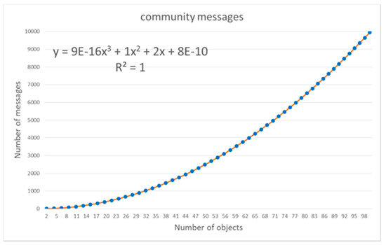 We can see that the number of messages exchanged between objects of a single community increases linearly with the number of objects in that community.
