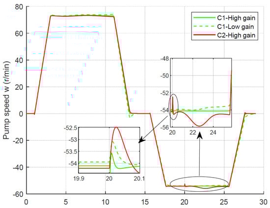 Pump speeds for C1 and C2 and response to the shock disturbance.