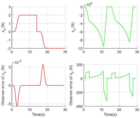 In order to verify the performance of the proposed extended state observer-based backstepping controller, the simulation was carried out in Simulink/Matlab. The parameters of the simulation system are designed in Table 1. The step of calculating simulation set 0.001 s, and chose the fixed step, which is consistent with the actual control physics. We established the mathematical model by the S-function according to (6); the variable’s value can be directly obtained and calculated indirectly from S-function. The extended state observer and backstepping controller were designed according to (11) and (19).