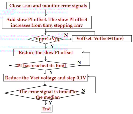 After the intelligent search for the laser lock point, the laser can be locked to the cavity resonance. However, it is not locked to the highest position of the resonance peak. So, we introduce the optimization of the resonance peak searching. The input offset of the slow PI gradually increases from the initial value, with a step of 1 mV in our case, until the cavity transmission is less than it was at a previous time. Once the input offset is optimized, the PI parameters will be optimized on a step-by-step basis by minimizing of RMS of the error signal. Figure 5 depicts the specific process.