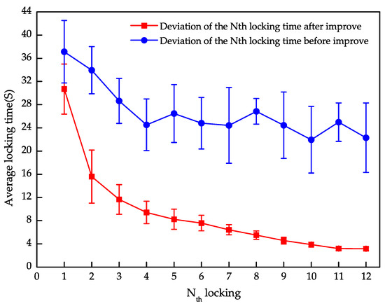 The relocking times before and after the improvement of the algorithm is shown in Figure 8. In the experiment, we interrupted the frequency locking consequently 12 times in our case, and recorded the corresponding relocking time of for each step.