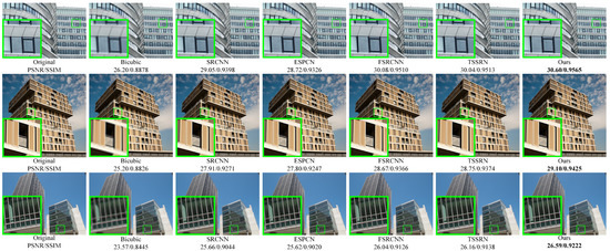 The “052”, “087” and “096” images from the Urban100 dataset with an upscaling factor of 3.