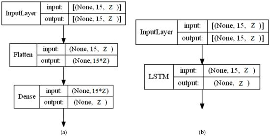 During this research, we have investigated different auto-encoder types (i.e, FFNN and LSTM), topologies, and hyperparameters. Lengths of 512 and 1024 ECFP vectors were tested; therefore, two auto-encoders were trained for each type of ANN. The main parameter of auto-encoders is the latent dimension size, which was set to 512 and 1024, with 512 and 1024 vectors, respectively. These values were not chosen accidentally: they produced the most accurate reproductions and compressed the input data by 15 times (because the input matrix is 512 × 15 or 1024 × 15). Besides this, different latent dimension sizes were tested by stacking multiple neural network layers containing 64, 128, 256, 512, 1024, and 2048 neurons; however, shallow auto-encoders performed better, and were selected for the final testing. Figure 1 illustrates the topologies and sizes of the layers of FFNN- and LSTM-based auto-encoders. The encoders were later combined with an FFNN classifier.