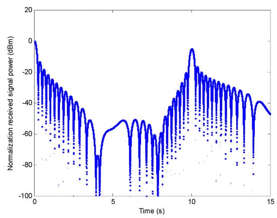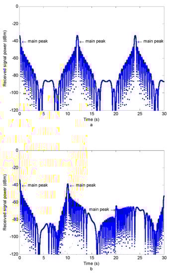 is maximum, which causes a main peak in the received signal time–power images. When the product of