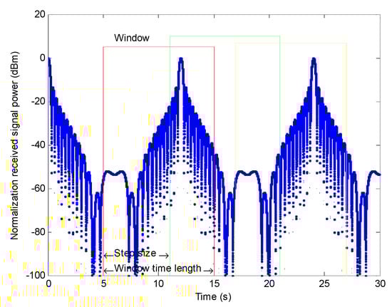 First, the model of the received signal power in an EW system is constructed under the assumption that antennas of the radar and EW system mounted on a stationary platform scan circularly. Generally, the radar transmitting antenna has a narrow beam used to increase the spatial resolution and to extend the detection range, so most of the transmitting power is concentrated in the boresight direction, i.e., in the main lobe beam direction. Since the boresight direction of an antenna is a direction in which the antenna gain is maximum, the received signal of the EW system has the maximum power when the boresight of a radar antenna passes through the boresight of the EW system antenna. When the distance between an EW system and a radar is